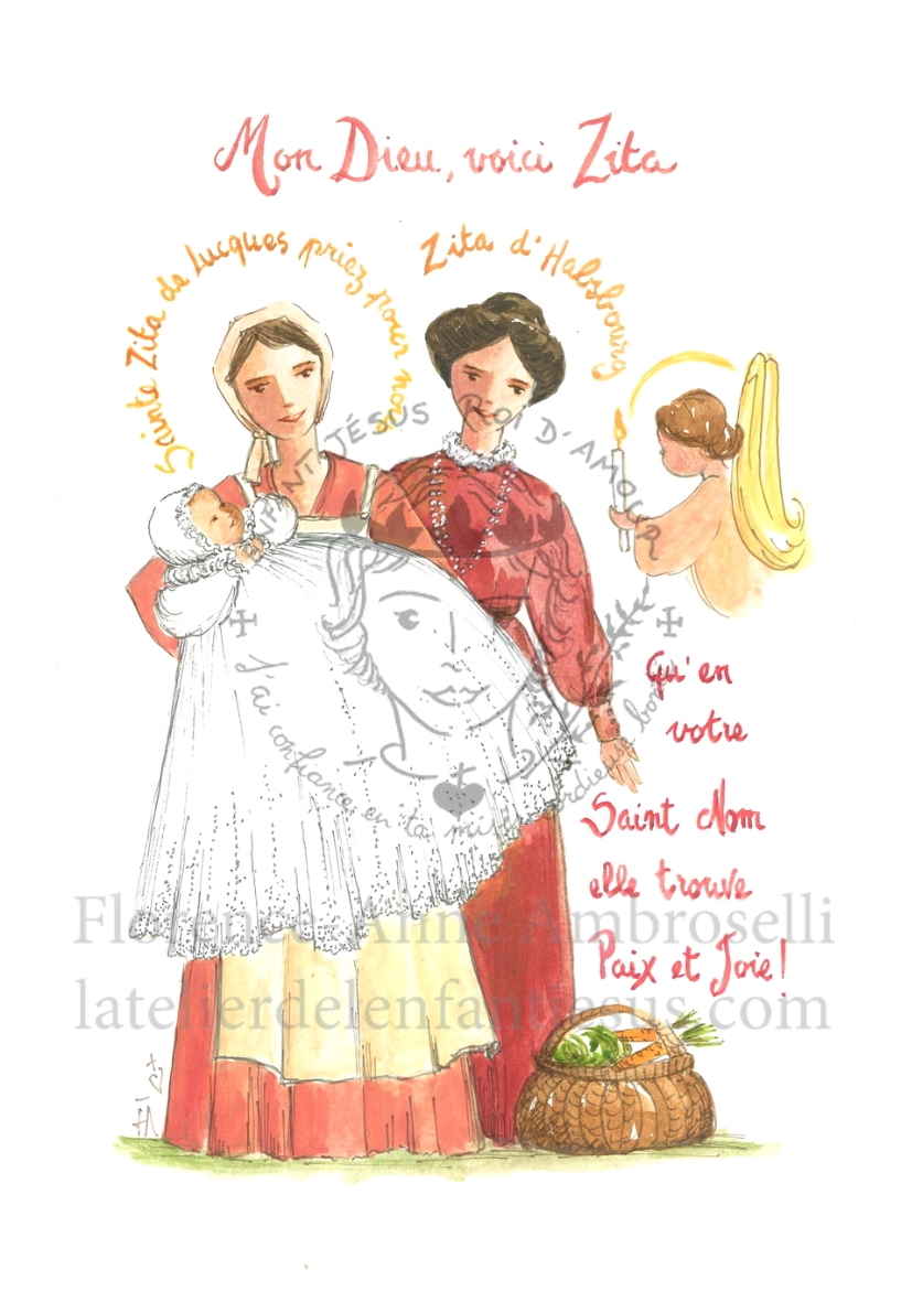 Illustration Sainte Zita de Lucques et l'impératrice Servante de Dieu, Zita d'habsbourg avec la jeune baptisée